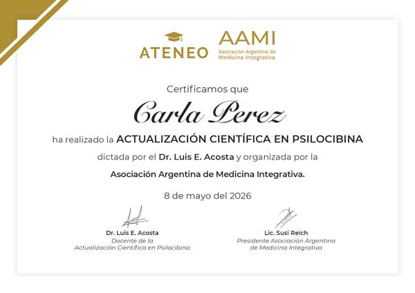 - Diploma certificando nivel avanzado (No requiere conocimiento previo, pero podés ver Psilocibina 1 en Diferido)